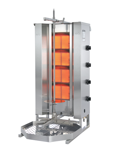 Gyros, kebab gazowy, 4 strefy grzewcze, wsad 70 kg, 14 kW, dolny napęd, 550x510x1030 mm, taca na tłuszcz o wym. 550x550 mm | POTIS, MU GD4/gaz ziemny
