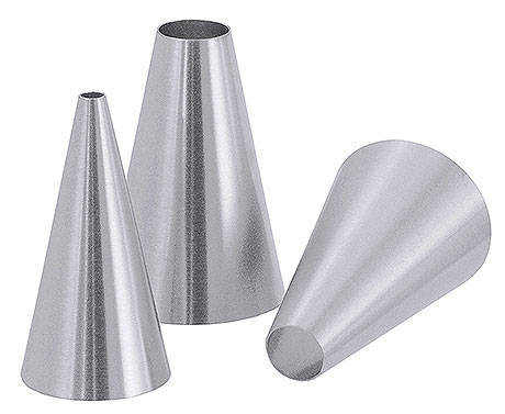 Końcówka okrągła prosta do worków do wyciskania, wykonanana ze stali nierdzewnej polerowanej na pół połysk.