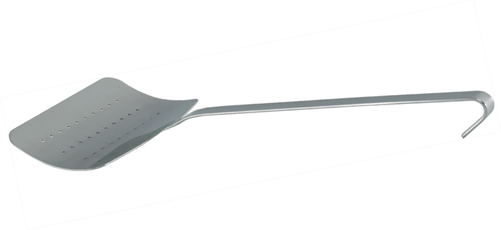 Wykonana z satynowanej stali nierdzewnej 18/10 łopatka do ryb z uchwytem zakończonym hakiem. 30 otworów po 3,5 mm.