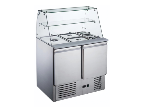 Stół chłodniczy sałatkowy 2-drzwiowy z nadstawą szklaną 240 l, 900x700x850 mm | TECHNICA, Cold Line
