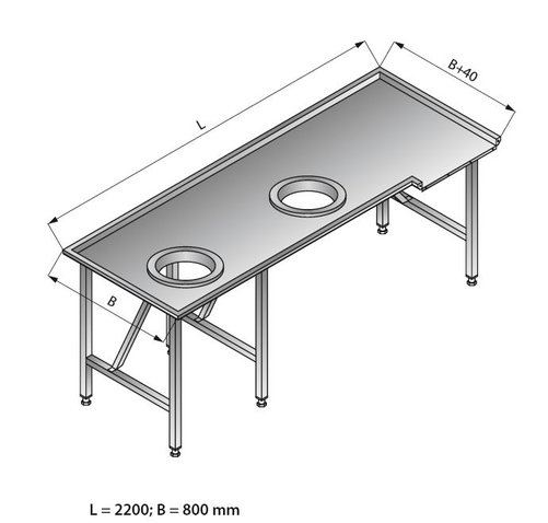 Stoły przystosowane do współpracy ze zmywarkami podblatowymi maja spawana konstrukcje szkieletowa. Płyty górne i blaty stołów oraz płyty zlewozmywakowe wykonywane są z blachy szlifowanej o grubości 1,2 mm wzmocnionej profilami stalowymi. Stoły przystosowane do zestawiania ciągów technologicznych ze zmywarkami kapturowymi maja konstrukcje skręcana, przystosowana do łączenia ich ze sobą oraz ze zmywarkami. Nogi stołów i podstaw wykonane są z zamkniętych profili kwadratowych o wymiarze 40 mm. Stopki o zakresie regulacji 30 mm. Wykonane są z wysokogatunkowego tworzywa. Nadstawki i półki maja spawana konstrukcje ze szkieletem wykonanym z zamkniętych profili kwadratowych o wymiarze 25 mm.