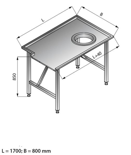 Stoły przystosowane do współpracy ze zmywarkami podblatowymi maja spawana konstrukcje szkieletowa. Płyty górne i blaty stołów oraz płyty zlewozmywakowe wykonywane są z blachy szlifowanej o grubości 1,2 mm wzmocnionej profilami stalowymi. Stoły przystosowane do zestawiania ciągów technologicznych ze zmywarkami kapturowymi maja konstrukcje skręcana, przystosowana do łączenia ich ze sobą oraz ze zmywarkami. Nogi stołów i podstaw wykonane są z zamkniętych profili kwadratowych o wymiarze 40 mm. Stopki o zakresie regulacji 30 mm. Wykonane są z wysokogatunkowego tworzywa. Nadstawki i półki maja spawana konstrukcje ze szkieletem wykonanym z zamkniętych profili kwadratowych o wymiarze 25 mm.