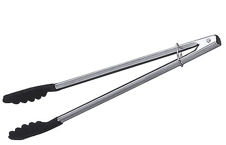 Szczypce uniwersalne wykonane z polerowanej stali nierdzewnej ze sprężyną i klipsem zaciskowym. Poliamidowe końcówki zapobiegają zadrapaniom powierzchni patelni itp. Odporne na temperaturę do 220 stopni Celsjusza. Można myć w zmywarkach.