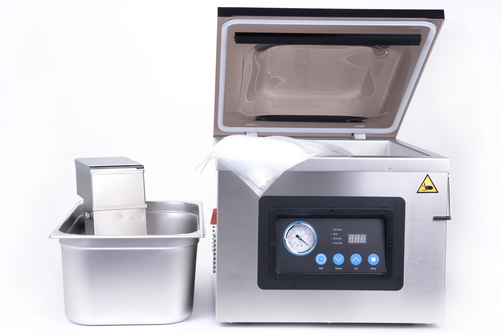 Zestaw podstawowy, który znajdzie swoje zastosowanie zarówno w kuchni domowej jak i w małej restauracji lub food truck'u składa się z pakowarki listwowej, niewielkiego cyrkulatora oraz GN 1/2 o głębokości 200 mm. Jeżeli potrzeby są większe, to prezentujemy dwa profesjonalne zestawy do gotowania Sous-Vide, w których mamy pakowarki komorowe z pompą olejową oraz profesjonalne cyrkulatory do gotowania w niskiej temperaturze. Dodatkowo trzeba pamiętać o tym, że gotowanie Sous-Vide powinno odbywać się pod przykryciem lub z użyciem kulek izolacyjnych dostępnych w naszej ofercie.